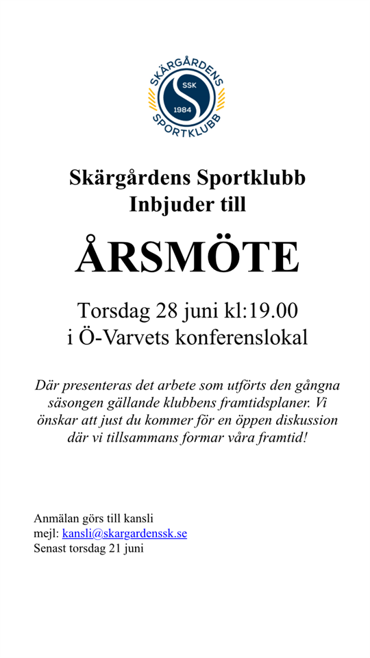 Har du valt ditt pass? Vi har en lång lista med anmälningar över de föräldrar som bokat pass, grymt bra och många var riktigt snabba! Vi saknar dock fortfarande en hel del namn, nu är det hög tid. Ni som inte anmält er ännu gå in och gör det så snart ni bara kan. Denna lista skickas till respektive lagledare så att de kan kolla igenom och även hjälpa till att påminna där det behövs. Bokningssystem har varit igång sedan mars månad Vår sommarverksamhet, Lundqvist Goalie Camp och Joel Lundqvist Hockey Camp, pågår under v 27-31. Gå direkt in på, Bokningssystem https://boka.se/Frolundacamps Detta är Skärgårdens Sportklubbs helt klart största arrangemang som sker i samarbete med bröderna Lundqvist och Frölunda HC. Vi är väldigt stolta över denna möjlighet att få vara medarrangör till detta fantastiska event. Detta har stor betydelse för oss som förening och möjliggör bland annat att vi får fler veckor på is och kan satsa framåt på vår verksamhet. Stort tack på förhand för din insats, det är du som är med och bygger en förening för ”så många som möjligt så länge som möjligt” Har du frågor kring detta? Kontakta Johanna Rosenberg som är ansvarig. Mvh Anna Nyberg