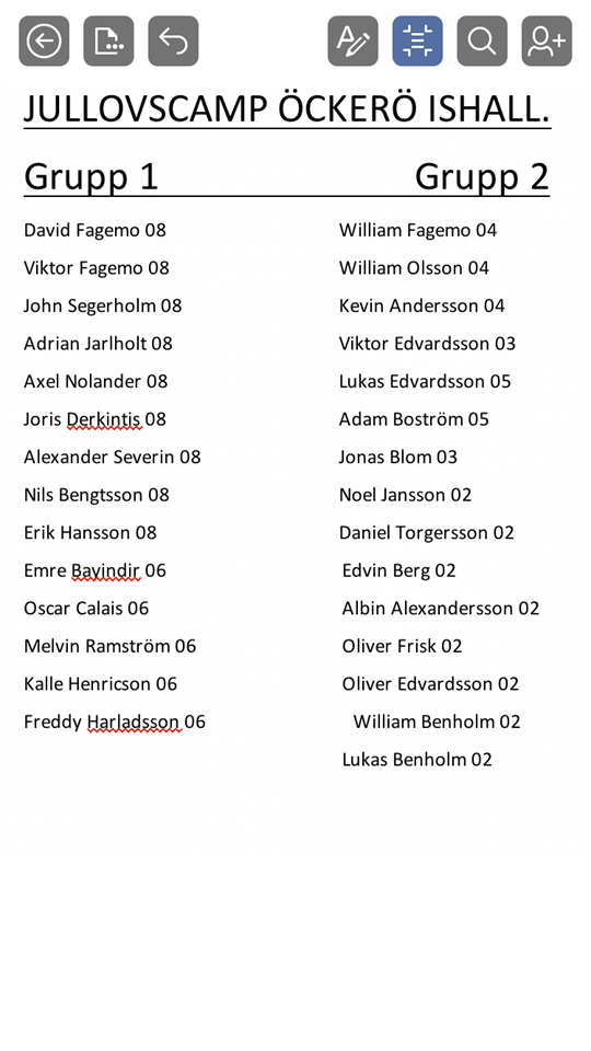 Nu är det snart dags fö jullovscampen nedan följer lite schema och gruppindelning SCHEMA JULLOVSCAMP 2-5/1 GRUPP 1. Måndag: Is 08:00-09:20 Fys 09:50-10:50 Frukost/Teori 11:00-12:15. Tisdag: Is 08:00-08:50 Fys 09:30-10:30 Frukost/Teori 11:00-12:00 Onsdag: Is 09:30-10:50 Fys 11:00-12:00 Frukost/Teori 12:15-13:00 Torsdag: Is 07:00-07:50 Fys 08:30-09:30 Frukost/Teori 10:00-11:00 ----------------- SCHEMA JULLOVSCAMP GRUPP 2. Måndag: Is 09:30-10:50 Fys 11:00-12:00 Frukost/Teori 12:15-13:15 Tisdag: Is 07:00-07:50 Fys 08:30-09:30 Frukost/Teori 10:00-11:00 Onsdag: Is 08:00-09:20 Fys 09:50-10:50 Frukost/Teori 11:00-12:15 Torsdag: Is 08:00-08:50 Fys 09:30-10:30 Frukost/Teori 11:00-12:00 Med vänliga hälsningar Linus