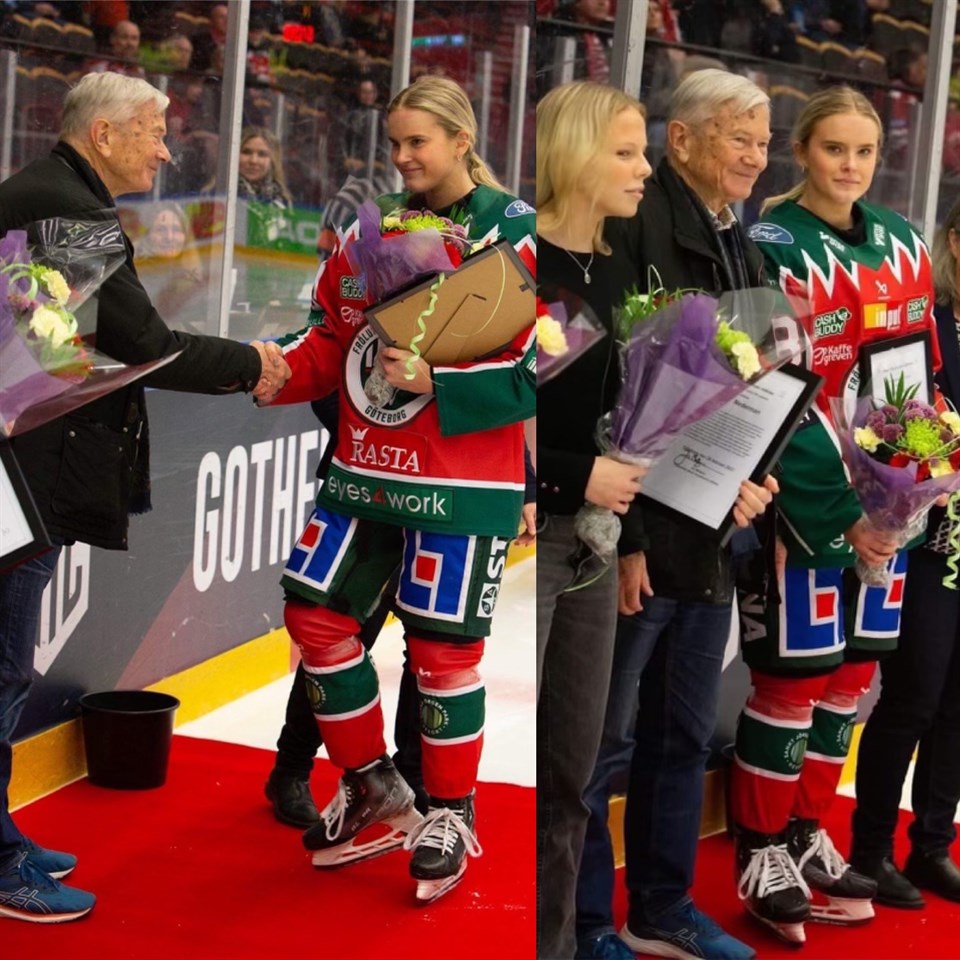 Idag när Frölunda möte IF Troja-Ljungby i Play Off till SDHL tilldelades vår Tilde Utbult ett stipendium innan matchstart, motivering lyder enligt nedan, / Håkan Gustafssons Stiftelse 2022 års Stipendium för spelare tilldelas Tilde Utbult Tilde Utbult är en spelare som sedan unga år haft en stor passion och ett brinnande hjärta för hockeyn och även sin moderförening Skärgården SK. Tilde är målmedveten och har alltid tränat hårt för att nå sina mål. Tilde är engagerad, ansvarstagande och en positiv drivkraft. Hon har deltagit som hjälpledare i skridskoskola och hockeyskola och hon är en förebild för unga spelare. Trots motgångar med skador har hon kämpat sig tillbaka. Tilde har trots sin unga ålder spelat i SDHL och har spelat för Tre kronor i Junior-VM och kan redan nu stoltsera med både ett OS-silver och ett VM-silver. Tilde är en förebild som bidrar till damhockeyns utveckling. Göteborg den 20 februari 2023 Jan Mellgren Ordförande Håkan Gustafssons Stiftelse / Vi i Skärgårdens Sportklubb är oerhört stolta över Tilde och den förebild hon idag är för många unga spelare! Psst, Tilde och gänget vann mot Troja och flyger just nu fram mot näst nivå - SDHL. Fotograf: Fredrik Holmblad