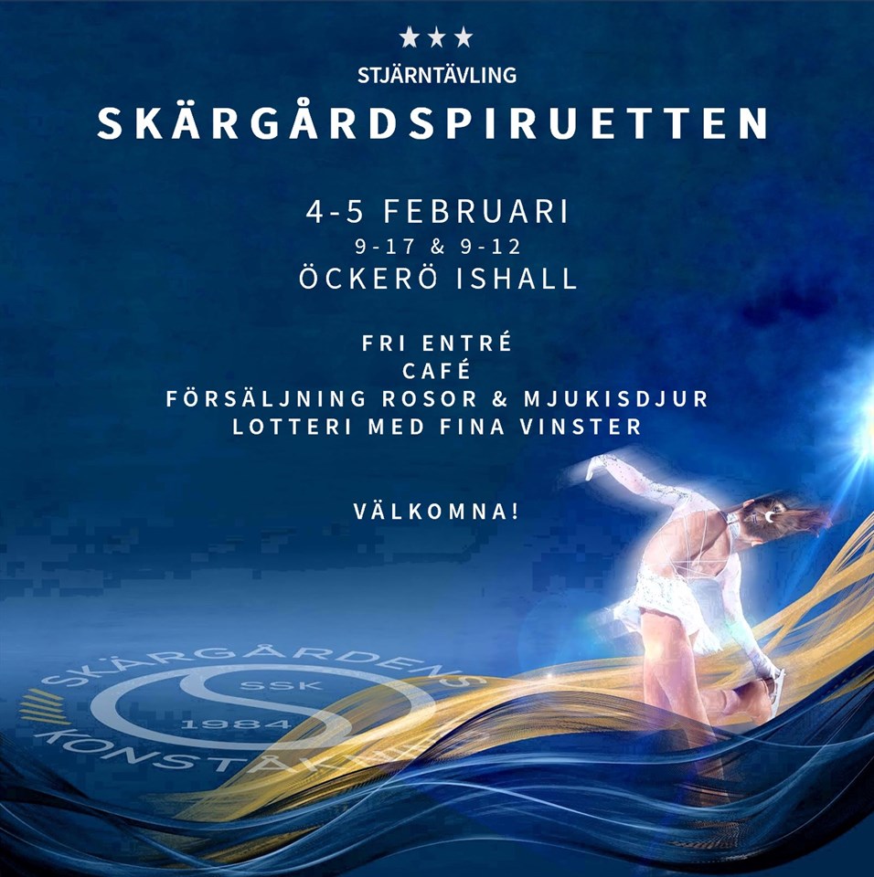 Nu är det nedräkning till helgen, då vår egen stjärntävling Skärgårdspiruetten går av stapeln hela lördag och på söndag fm. Välkomna till ishallen för att se alla duktiga åkare i sina tävlingsprogram, häng med oss en stund och stanna gärna för en fika i caféet som håller öppet.