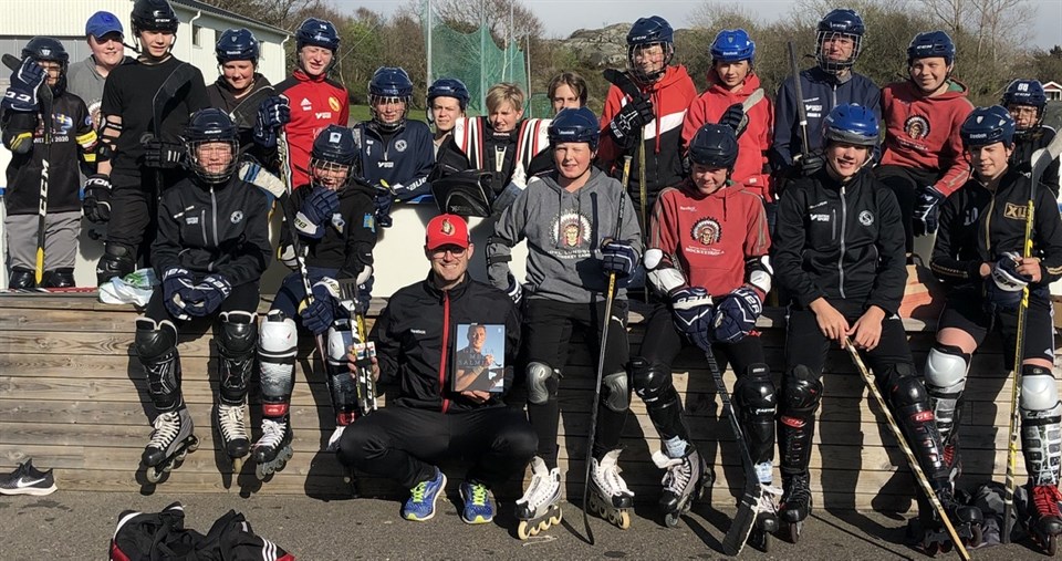 I samband med dagens inlinesturneringsfys tackade vi av Pontus för all den tid han lagt tillsammans med framförallt vÄra 05-or genom Ären. Som tack fick Pontus en uppsÀttning grillbestick vÀrdiga en Àkta hockeyfantast, samt lite grilltips frÄn en av de största, Börje Salming. Vi önskar Pontus lycka till i Frölundas organisation till hösten, men vi kommer sÀkert stöta pÄ honom emellanÄt hÀr i hallen ocksÄ.