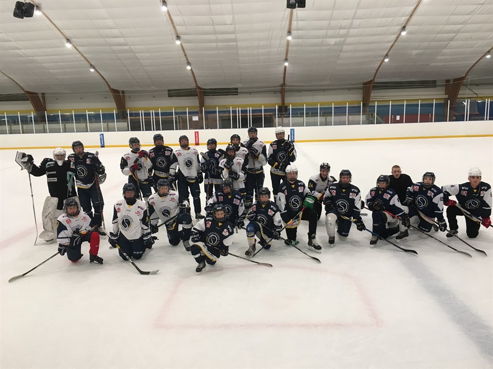 Första året i seriespel slutar med en delad serievinst! I helgen som var spelade våra äldre tjejer sina sista seriematcher för denna säsong. Det var ett dubbelmöte mot Hovås tjejer som hittills var obesegrade i serien. Våra tjejer hade sedan tidigare två förluster varav den ena mot just Hovås. I årets upplaga av GP-pucken för tjejer var det dessutom just Hovås som lyckades lura in pucken i vårt mål i slutsekunden och därmed snuvade oss på finalen, så det var ett taggat gäng som ställde upp sig på isen på lördag kväll för första matchen. När pucken släpptes var det full fart framåt och samtidigt murades det igen bakåt. Vilka tjejer vi har! De har vuxit som lag från match till match under säsongen. Från att några av dem knappt hade stått på skridskor och ännu mindre hållit i en klubba tidigare till att spela passningsspel, försvarsspel och anfall som de aldrig gjort annat. Målen fullkomligt sprutade in denna afton och när slutsignalen ljöd visade resultattavlan 9-2!! Det var otroligt nöjda tjejer, ledare och hejarklack som åkte hem och laddade om för returmöte i Hovås på tidig söndag morgon. På söndagen var det först inte riktigt lika taggade tjejer som gled ur bilarna i Askim kl 07.30 för returmöte, men när stereon kom på och uppvärmningen var gjord så var kämparglöden på topp igen, vi visste ju nu att allt var möjligt! Hovås hade några fler spelare med denna match som saknades under lördagen och det var en betydligt jämnare kamp med chanser åt båda håll. Hejarklacken var även den på topp och fast beslutna om att heja fram våra tjejer till seger även i denna match. Det blev mål åt båda håll och hela matchen är olidligt spännande. Med tre minuter kvar så hamnar både Tilde och Ella i utvisningsbåset under nästan en minut, det var en svettig stund, men resten av laget krigar på och löser det galant! Våra tjejer lyckas med vad de tidigare trodde var omöjligt, de vinner även denna match! 2-4 blir resultatet. I och med detta går vi upp på samma poäng som Hovås och slutar som delade serievinnare!! Lyckan är total!! Det blir segerdans både på isen, läktaren och inte minst i omklädningsrummet. Att se denna glädje är helt fantastiskt. Det bestäms snabbt att detta måste firas med fest och sagt o gjort, handlingskraftiga som detta gäng är så organiseras allt och några timmar senare bjuds det på tacos, bubbeldryck, diplom, femkamp och inte minst -guldhattar på för spelare och ledare hemma hos mr Kling, allt fixat av tjejerna själva, imponerande! Vi ser fram emot att få fortsätta följa detta härliga gäng, fortsätt precis som ni gör tjejer - på is med glädje! Charlotte Bäckström Utbult genom Anna Nyberg