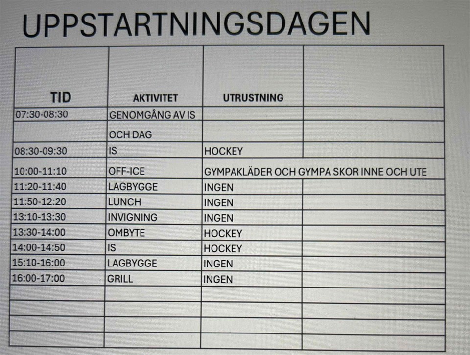 Hej Vi vill tacka alla ni föräldrar som var med och hjälpte till igår! Ni var grymma! Vi hade en bra uppstart med barnen och det har varit en rolig vecka att träffa alla efter sommaren. Barnen har vuxit och det märks :) Under v 35, 36 och 37 är det helgcuper på ishallen vilket betyder att vi inte kommer att ha någon träning dessa lördagar. När vi åter har en lördagsträningar kommer vi i samband med den också ha ett föräldramöte, vilket blir den 21 september. Åter igen, stort tack till både er föräldrar och barn för igår 😃