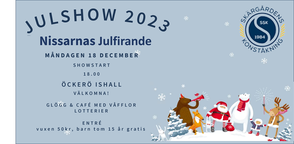 Nu är det snart dags för konståkningens årliga julshow!! Boka kvällen måndagen den 18e december kl. 18 för en stämningsfylld kväll i hallen där ni får se alla åkare från Frogs upp till våra tävlingsåkare framföra sina nummer. Glöm inte att bjuda med er släkt och vänner så att vi får en riktigt välfylld läktare!! Förutom showen kommer det också att finnas våfflor, glögg, lotterier mm. Varmt välkomna!